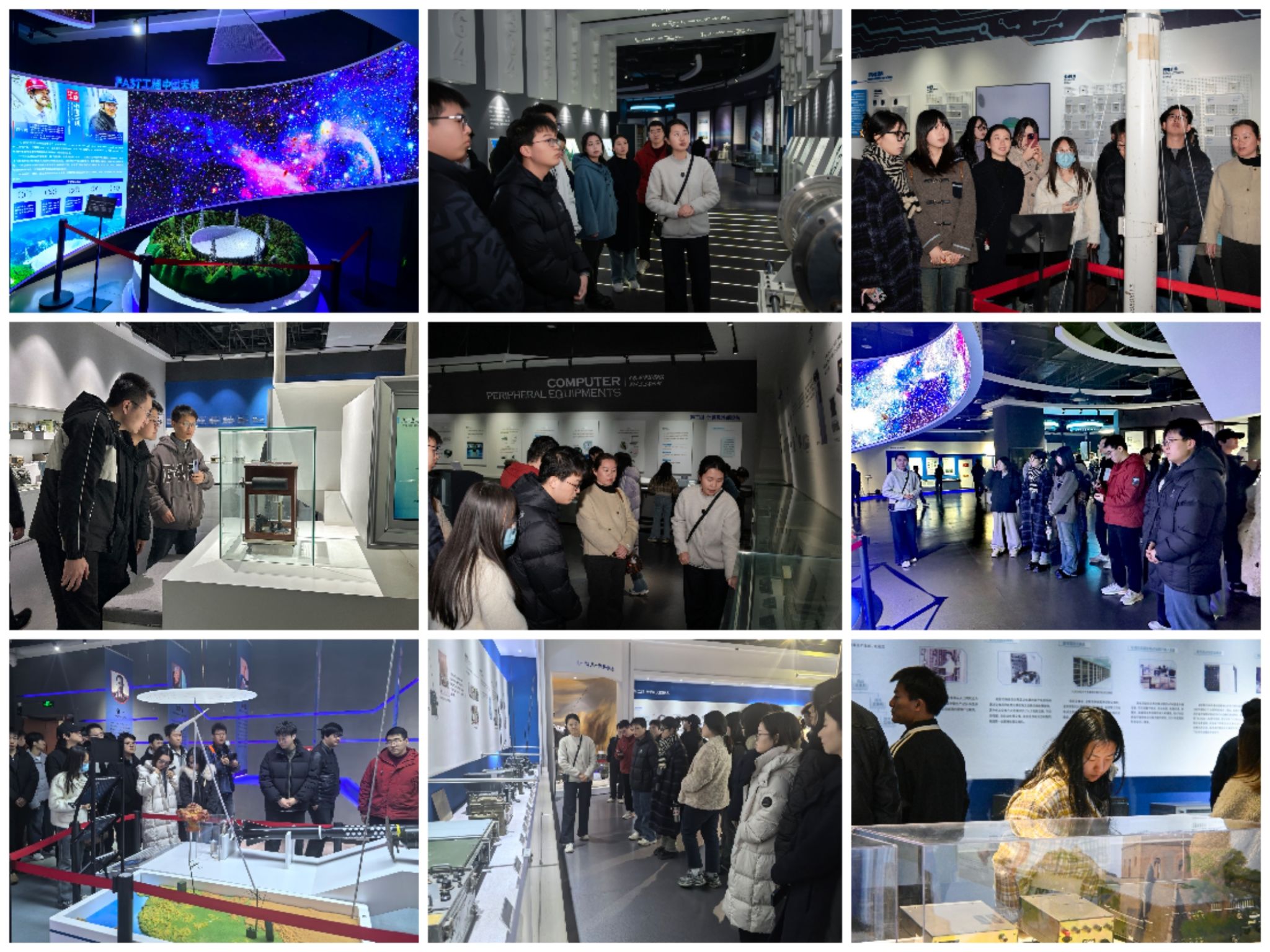 西安电子科技大学博物馆是一座综合性电子科技类博物馆,以电子科学技术发展历史上最具代表性实物为载体,结合现代数字化、多媒体等展示手段,全面、客观、准确地记录世界特别是中国电子科学技术发展的重要人物和事件,追溯电子科学技术发展的历史脉络和文化变迁。走进博物馆,厚重的电子信息科技发展底蕴扑面而来。在讲解员引导下,研究生们依次参观序厅、通信厅、雷达厅、计算机厅、电子元器件厅、电子测量仪器厅等六大主题展厅。从电报电台到无线移动通信,从卫星光通信到雷达整机系统,从计算机迭代到半导体技术突破,各展厅全方位呈现电子科技领域的发展侧面与突破历程。参观过程中,同学们驻足细看、认真记录,不时围绕技术原理、研发故事展开热烈探讨,在沉浸式体验中拓宽学术视野,深化专业认知。
