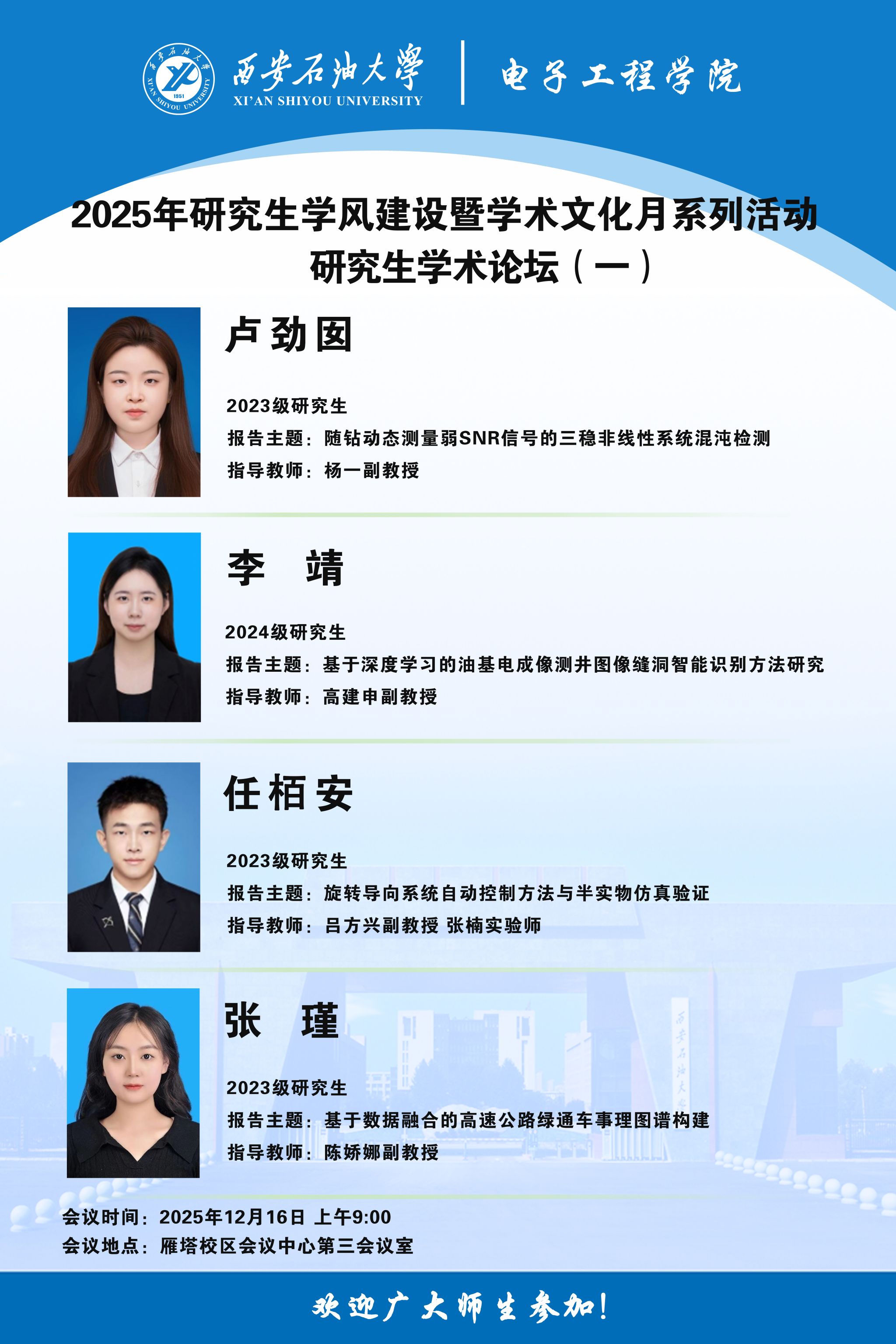守学术诚信之本 筑创新发展之基 西安石油大学电子工程学院2025年研究生学风建设暨学术文化月系列活动 —研究生学术论坛