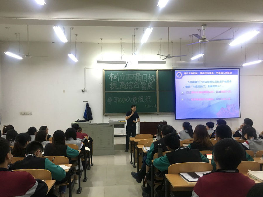 5月16日晚,电子工程学院第十七期入党积极分子培训班第五讲于鄠邑校区B区教学楼121室进行,本次党课主题为:树立正确目标,提高综合素质,争取加入党组织,由校党委组织部副部长王亮老师主讲。