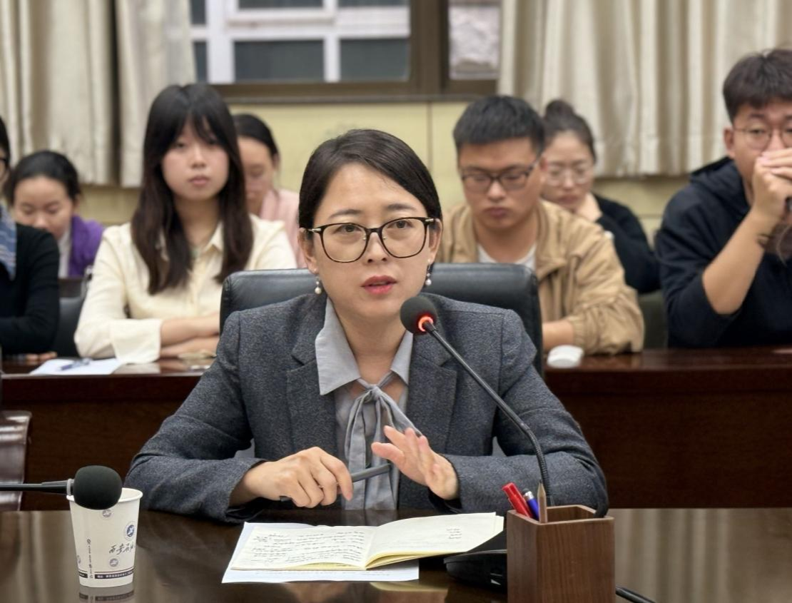 会上,研究生2025级第一党支部书记宋雪娜声情并茂地讲述了新中国第一支女子测量队“为国找油”的奋斗故事。与会同志踊跃发言,分享着自己的所感所悟。