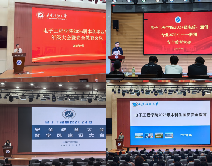 为切实保障全院学生假期安全,增强学生安全防范意识与自我保护能力,近日,电子工程学院各年级围绕“安全第一、预防为主”原则,通过主题班会、年级大会等形式,“教育+服务”多举措开展国庆假期安全教育系列活动,为全院学子平安过节保驾护航。