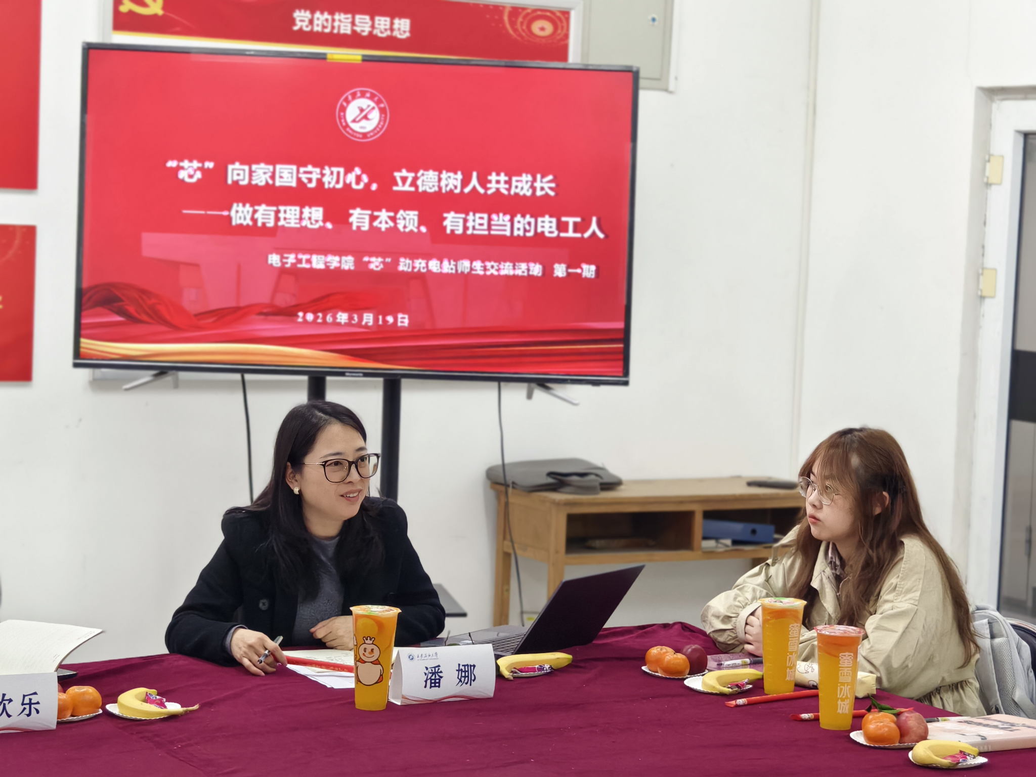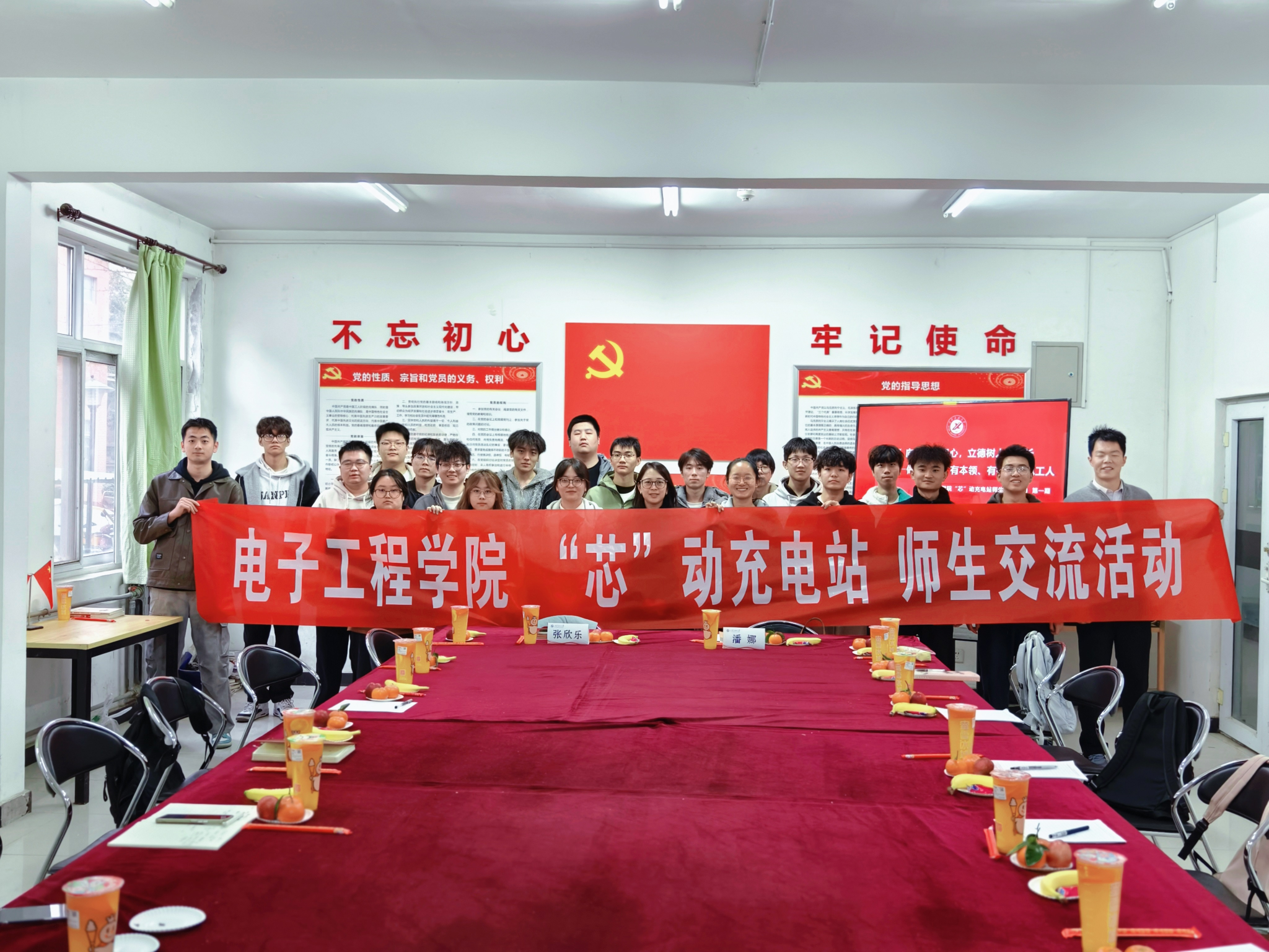 为深入推进一站式学生社区建设,搭建师生零距离沟通桥梁,精准了解学生成长需求,凝聚师生携手共进的成长合力,电子工程学院在鄠邑校区12号学生公寓楼“先锋领航”党员活动室举行首期“‘芯’动充电站”师生交流活动。学院党委书记潘娜与20余名学生代表进行交流,辅导员张欣乐主持。