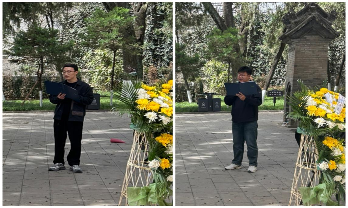 下午14时,师生们乘车抵达位于长安区少陵塬畔的杨虎城将军陵园。陵园内松柏苍翠,庄严肃穆。在杨虎城将军墓前,全体人员整齐列队,向革命先烈默哀一分钟,深切寄托对先烈的无尽追思。